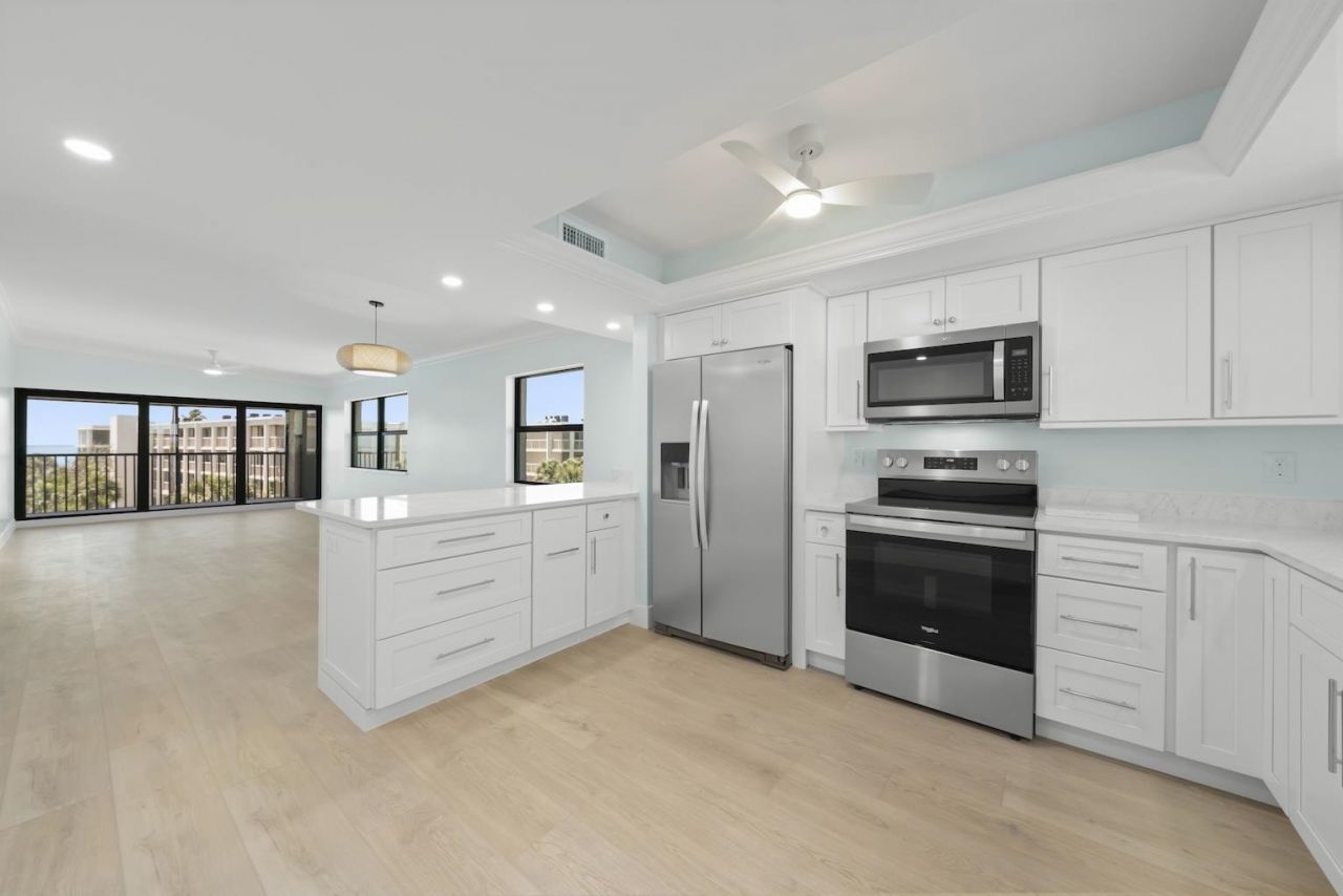 Spectacular Gulf views from this top floor, corner unit with a large lanai. Full remodeled in 2025 with all new kitchen, baths, flooring, lighting, stainless appliances, fresh paint, new ceiling fans, lanai tile, crown molding and solid core doors. New electrical, plumbing, water heater and AC since 2023. Enjoy the ease of living on the top floor with the convenient elevator. All units will have private storage closets under building 1 for all your beach toys. Pool has been refinished and the ne...Spectacular Gulf views from this top floor, corner unit with a large lanai. Full remodeled in 2025 with all new kitchen, baths, flooring, lighting, stainless appliances, fresh paint, new ceiling fans, lanai tile, crown molding and solid core doors. New electrical, plumbing, water heater and AC since 2023. Enjoy the ease of living on the top floor with the convenient elevator. All units will have private storage closets under building 1 for all your beach toys. Pool has been refinished and the newly re-imagined pool house is nearing completion. Beautiful stretch of beach just steps away. Unit is fully complete and ready for furniture. Would make a wonderful rental property with proximity to beach, pool and shopping/restaurants a quick bike ride away.