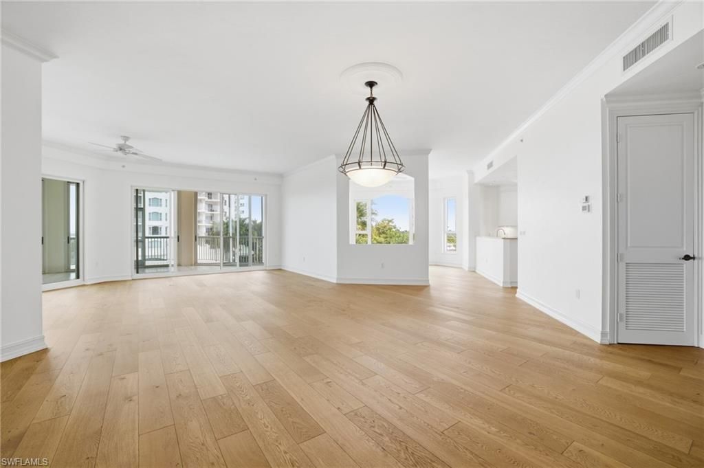 One or more photo(s) has been virtually staged, AI generated or rendered. Imagine ending every day with breathtaking Western sunsets over Estero Bay from your own private corner residence in Bayview at Bonita Bay. Located on the fourth floor of this elegant 12-story waterfront tower, this beautifully maintained home offers the peaceful setting that makes Southwest Florida living feel like a vacation every day. From the moment you enter the building, you’re welcomed by ...One or more photo(s) has been virtually staged, AI generated or rendered. Imagine ending every day with breathtaking Western sunsets over Estero Bay from your own private corner residence in Bayview at Bonita Bay. Located on the fourth floor of this elegant 12-story waterfront tower, this beautifully maintained home offers the peaceful setting that makes Southwest Florida living feel like a vacation every day. From the moment you enter the building, you’re welcomed by an inviting lobby before heading upstairs to a bright, spacious home designed to comfortably host family and friends. With three bedrooms plus a versatile study and three full bathrooms, the floor plan feels open and filled with natural light. Wide-plank wood flooring, lofty ceilings, and sliding glass doors frame views of shimmering water, lush greenery, and colorful evening skies. The enclosed lanai adds additional living space, while three private balconies invite you to enjoy the coastal breeze. The kitchen is ideal for everyday living and entertaining, featuring granite countertops, a center island, brand-new stainless-steel appliances, and abundant cabinetry. The primary suite feels like a private retreat with large windows overlooking the scenery and a spacious bath featuring dual vanities, a soaking tub, and a separate walk-in shower. Each guest bedroom enjoys its own bathroom, and one includes a built-in Murphy bed ideal for a home office or additional sleeping space. A standout feature is the private under-building two-car garage with extra storage. Residents of Bayview also enjoy a private gathering room with kitchen facilities, lounge seating, and dining space. Fresh interior paint provides a neutral palette ready for your personal style. The air-conditioning system was newly installed in 2026. Residents enjoy more than 12 miles of scenic walking and biking trails, a private beach park with Gulf access via community shuttle service, a full-service marina with Backwater Jack’s restaurant and much more! Optional membership opportunities at Bonita Bay Club offer golf, tennis, pickleball, fitness facilities, dining, and social activities. Just outside the gates, The Promenade provides shopping, dining, and the popular Center Bar for cocktails and live music. Homes offering panoramic sunset views, spacious living areas, private garage parking, a new AC system 2026, and the Bayview at Bonita Bay lifestyle rarely become available. Experience the views, space, and lifestyle firsthand, arrange your private showing today.